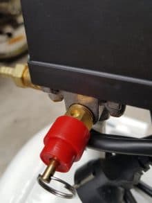 Công tắc áp có nhiệm vụ thể hiện áp lực trong bình nén.Máy hoạt động trong khoảng 5,5-8kg/cm².Van an toàn hỗ trợ khi công tắc áp gặp sự cố vượt quá 8kg van sẽ mở để duy trì áp máy an toàn.